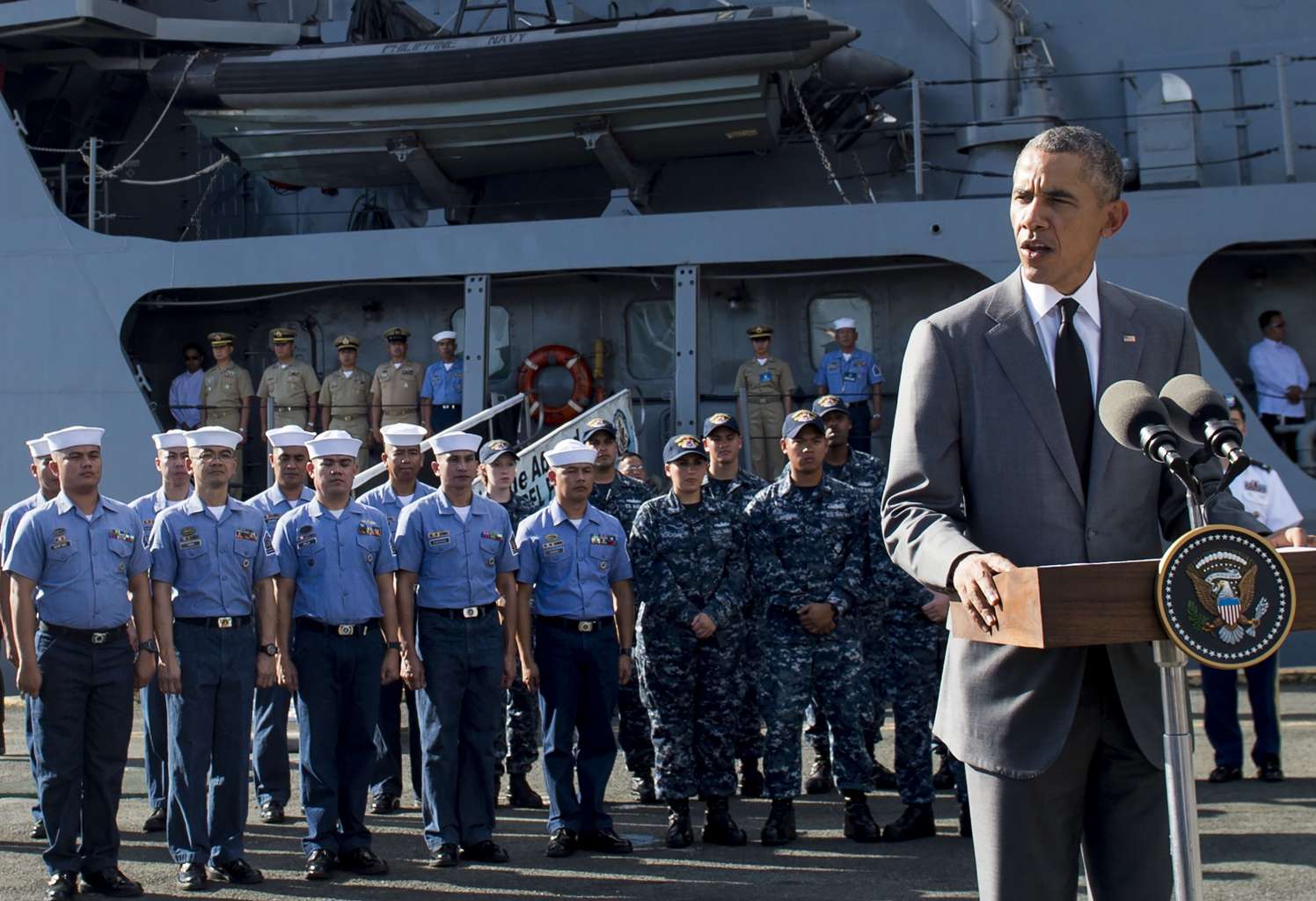 "The United States has been committed to the security of this region for more than 70 years, we have a treaty obligation, an ironclad commitment, to the defence of our ally the Philippines, who can count on the United States," Obama said as he toured the Philippine Navy's flagship vessel in Manila.