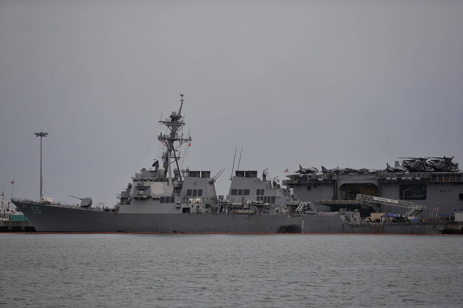 The USS John S. McCain at Changi Naval Base. The US warship was berthed in Singapore after it sustained serious damage after colliding with an oil tanker.