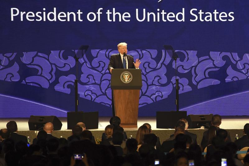 US President Donald Trump delivers a speech at the APEC CEO Summit in Danang, Vietnam on Nov 10, 2017