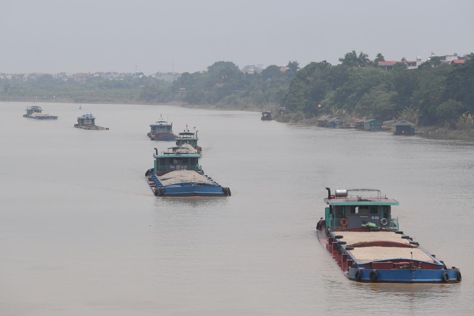 Boats transporting sand sail along the Red River in Hanoi. Vietnam needs about 100 million cubic metres of sand every year for construction projects across the country.