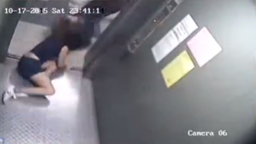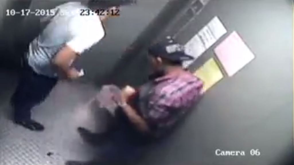 Lim was seen trying to grab the elevator doors but was kicked several times by both the men. At this point, the elevator doors closed.
