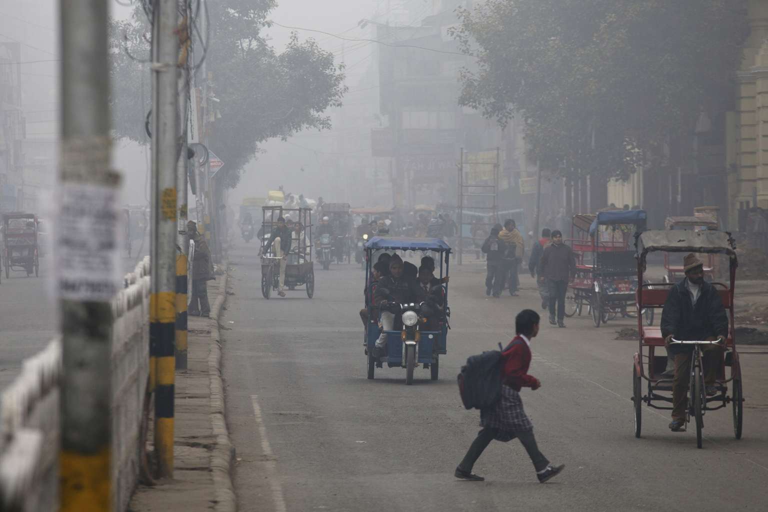 A road in New Delhi, India. A World Health Organization study of 1,600 cities released last year showed Delhi had the world's highest annual average concentration of small airborne particles known as PM2.5 - higher even than Beijing.