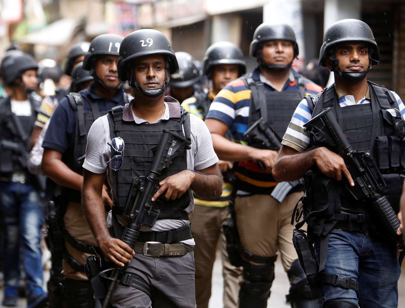 Security personnel leave the site after a police operation on militants on the outskirts of Dhaka, on July 26, 2016.