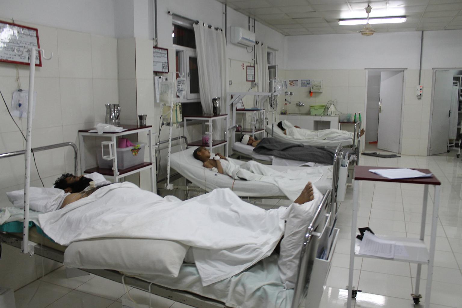 People receiving medical treatment at a hospital in Helmand, Afghanistan, after an explosion at the entrance gate of a sports stadium, on March 23.