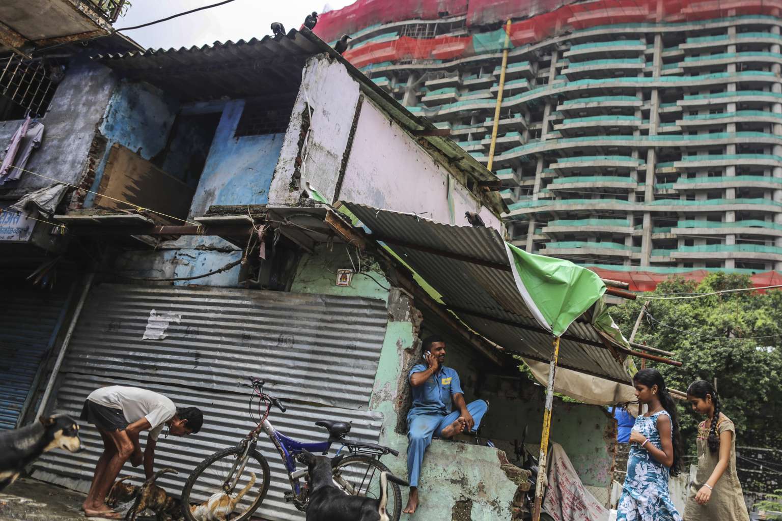 A slum next to a luxury tower construction site in the Parel area of Mumbai on Aug 8, 2014.