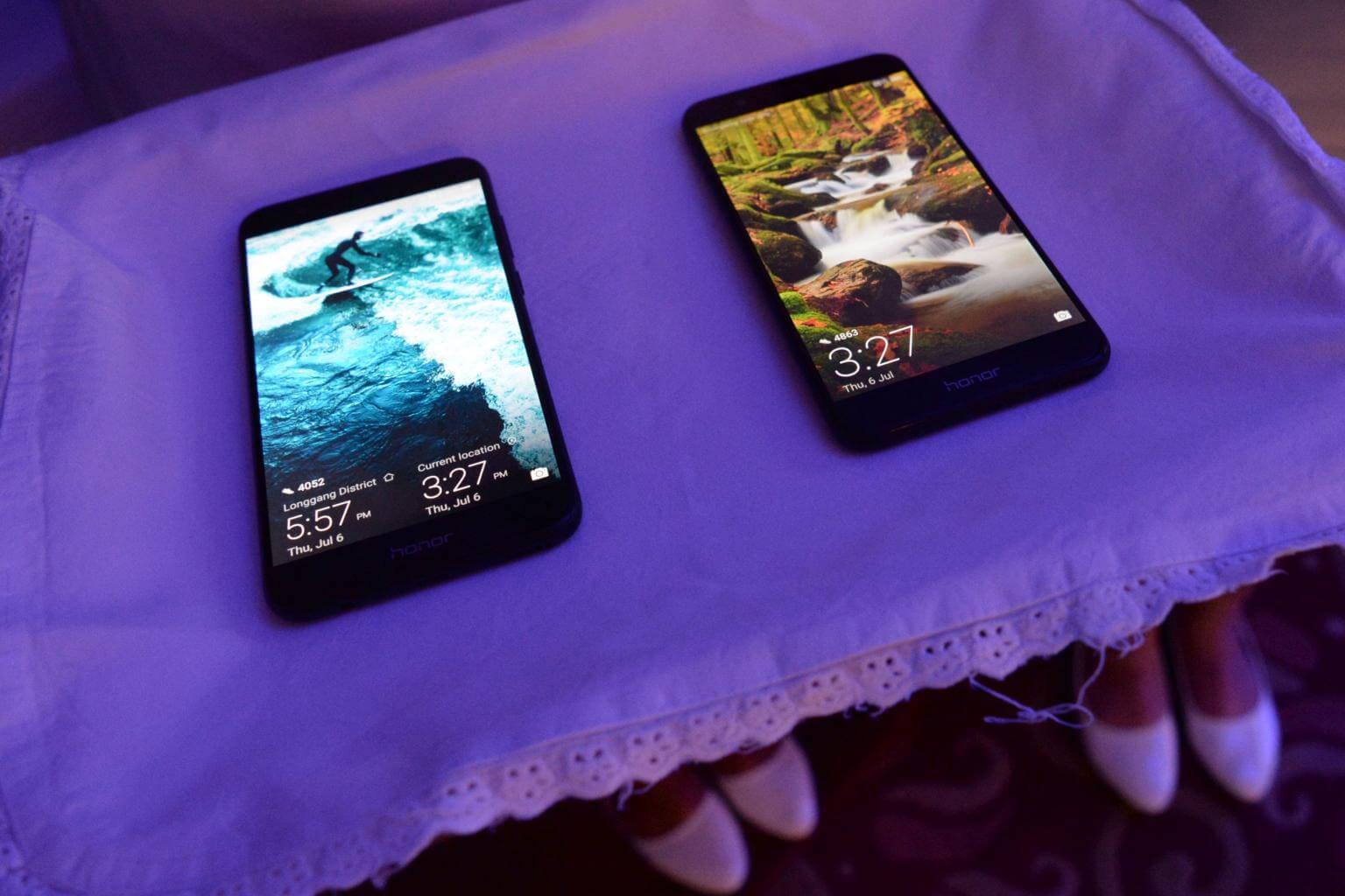 An official holds a tray with newly launched Huawei's Honor 8 pro smart phone at a promotional event in New Delhi, on July 6, 2017.
