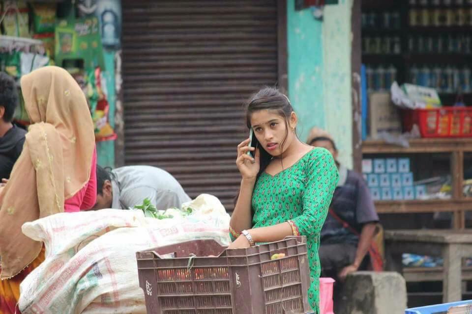 In one picture, the teenager is seen smiling as she carries crates of tomatoes across a bridge. In another one, she is captured talking on a mobile phone while selling vegetables at a market.