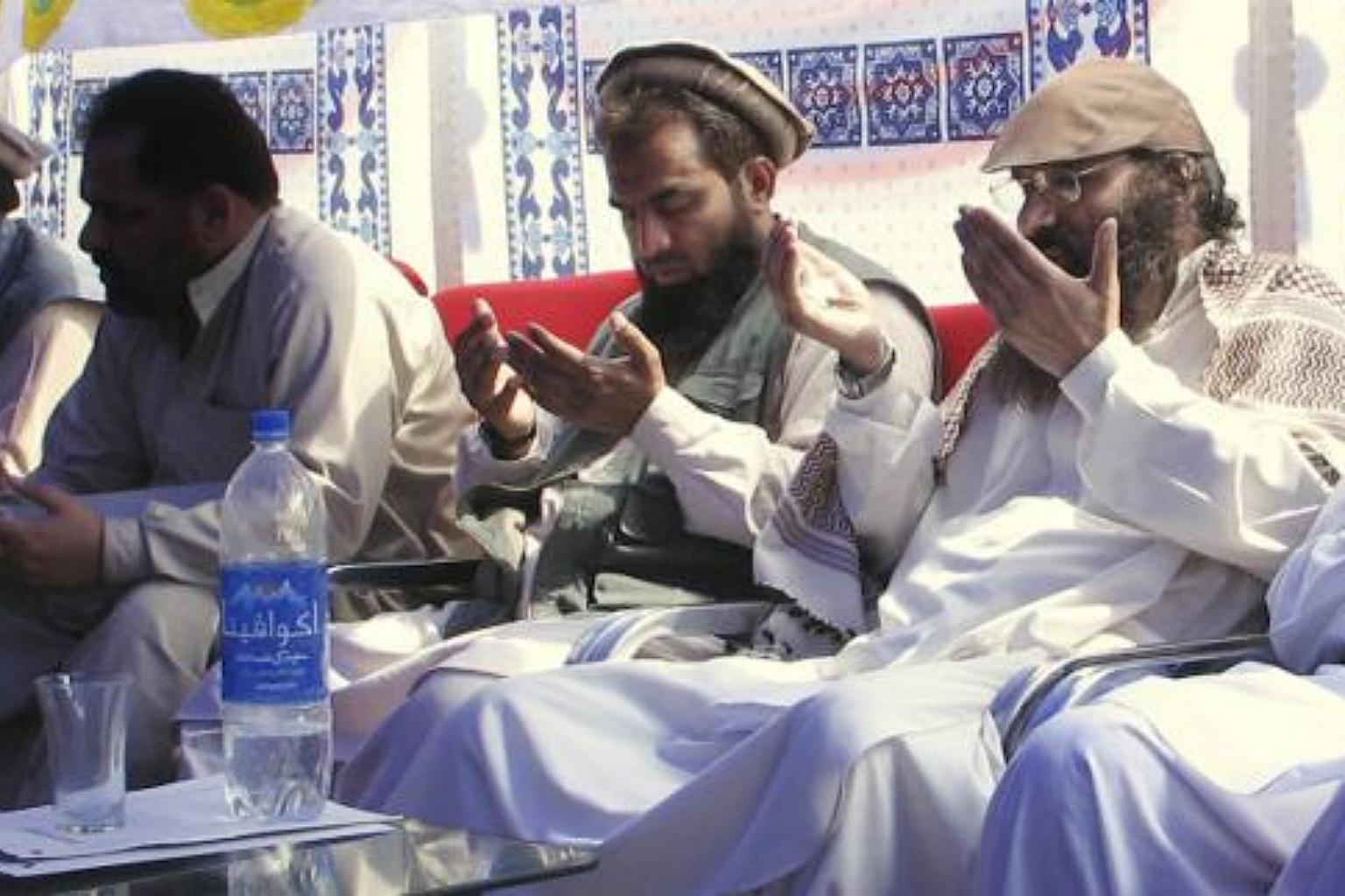Syed Salahuddin (right) chief of Hezbul Mujahedeen and Zaki-ur-Rehman Lakhvi, (left) prays at a rally on Saturday, June 28, 2008, in Muzaffarabad, capital of Pakistani Kashmir.