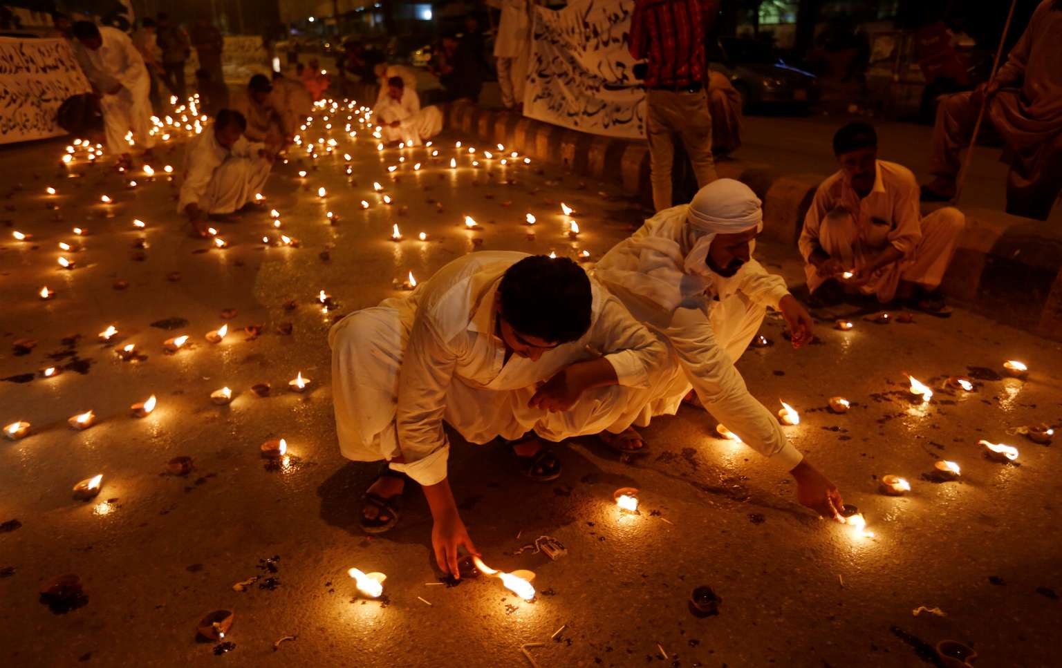 People light oil lamps to honour victims of the blast in Quetta during a vigil in Karachi, Pakistan, Aug 9, 2016.