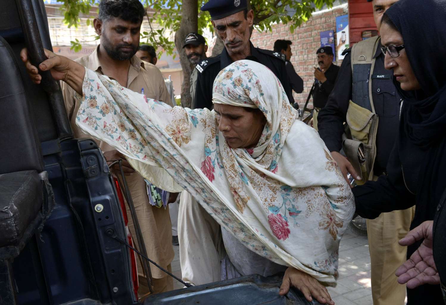 Pakistani police escort Perveen Bibi (centre), who allegedly killed her own daughter by burning her alive, as they go to a local court in Lahore, on June 10, 2016.