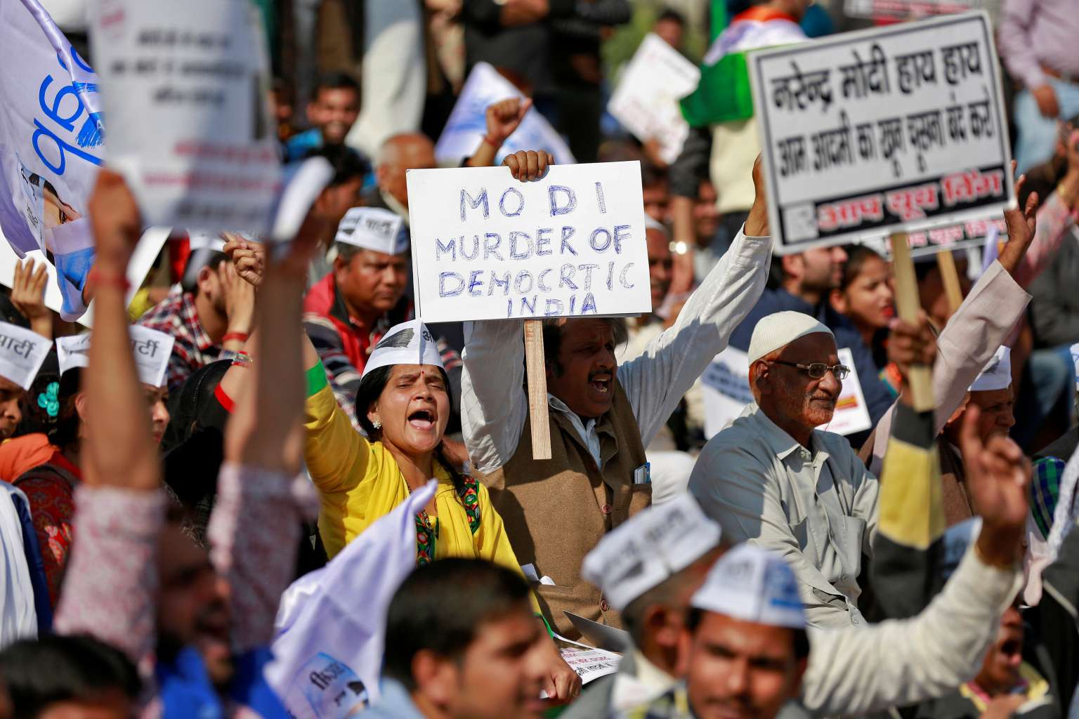 People gather in central Delhi for a protest on Nov 28, 2016, against the government's decision to withdraw 500 and 1000 Indian rupee banknotes from circulation.