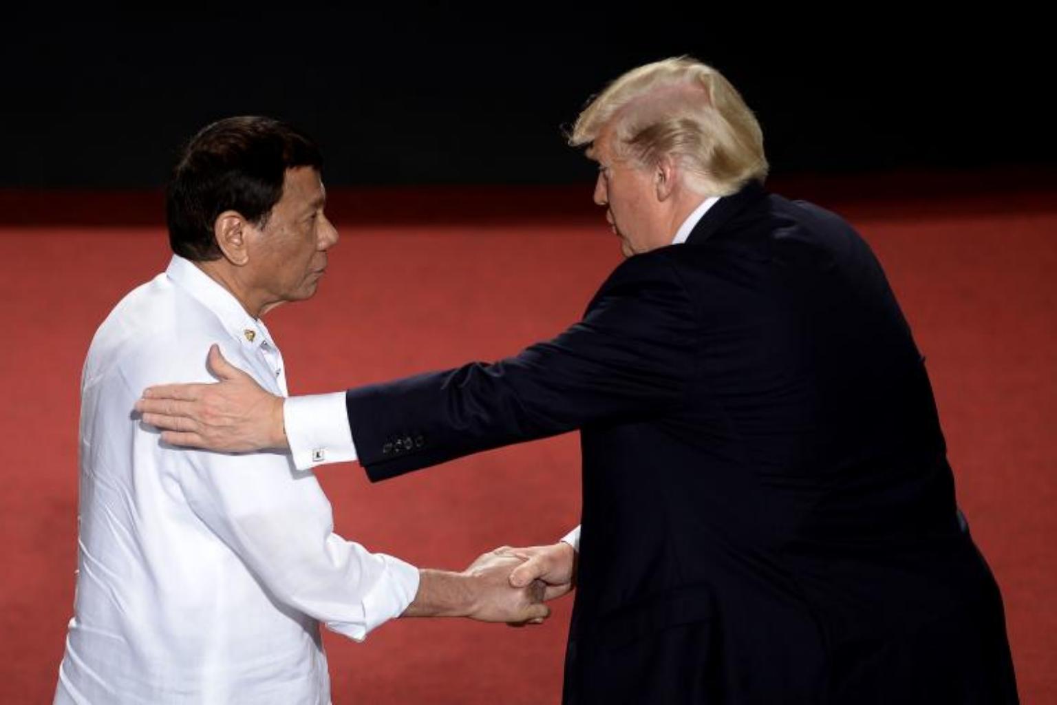Philippine President Rodrigo Duterte shakes hands with US President Donald Trump during the 31st Association of Southeast Asian Nations (ASEAN) Summit in Cultural Center of the Philippines (CCP) in Manila on Nov 13, 2017.
