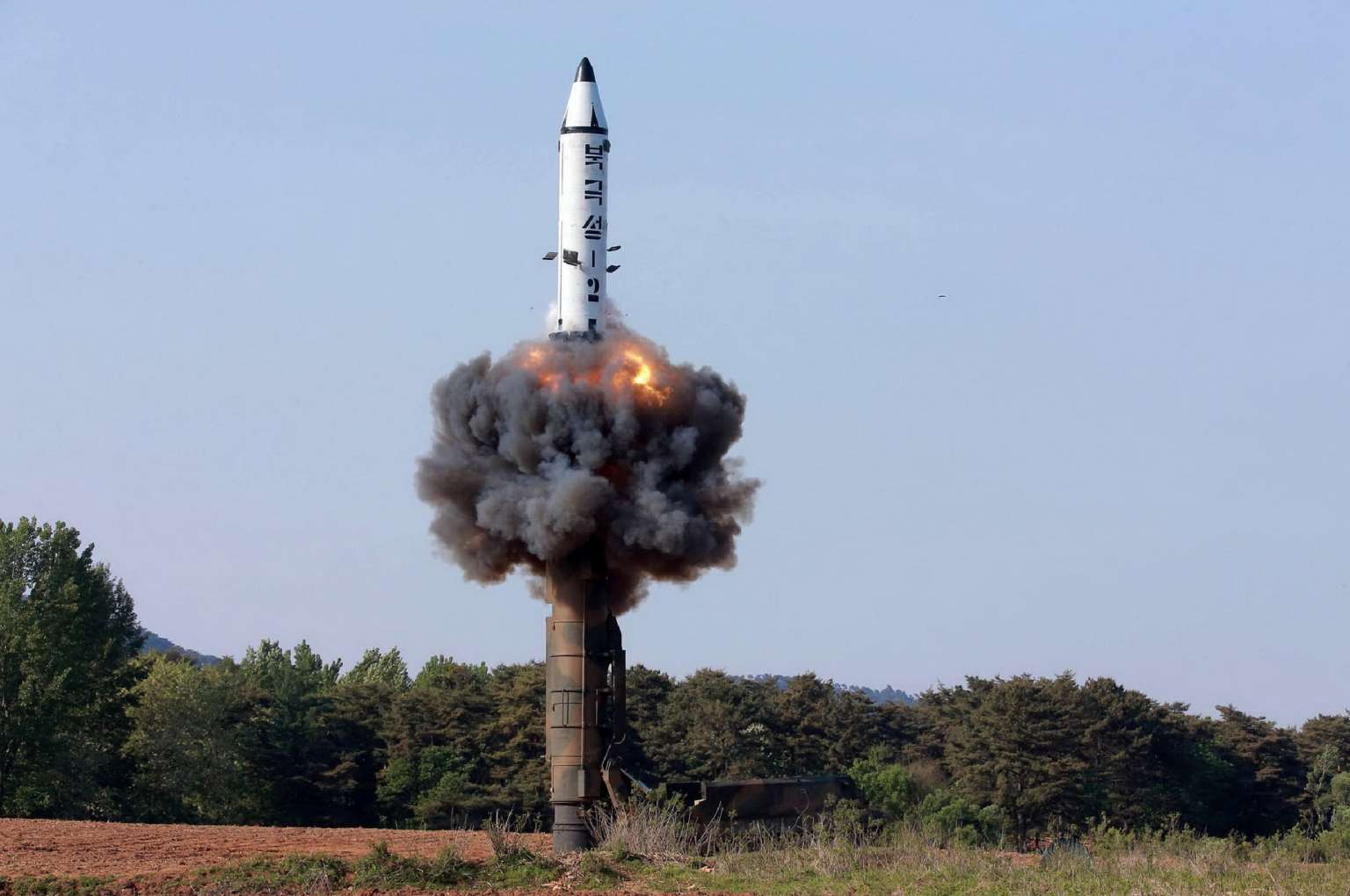 This undated photo shows North Korean ground-to-ground medium-to-long range strategic ballistic missile Pukguksong-2 being launched in a test-fire.