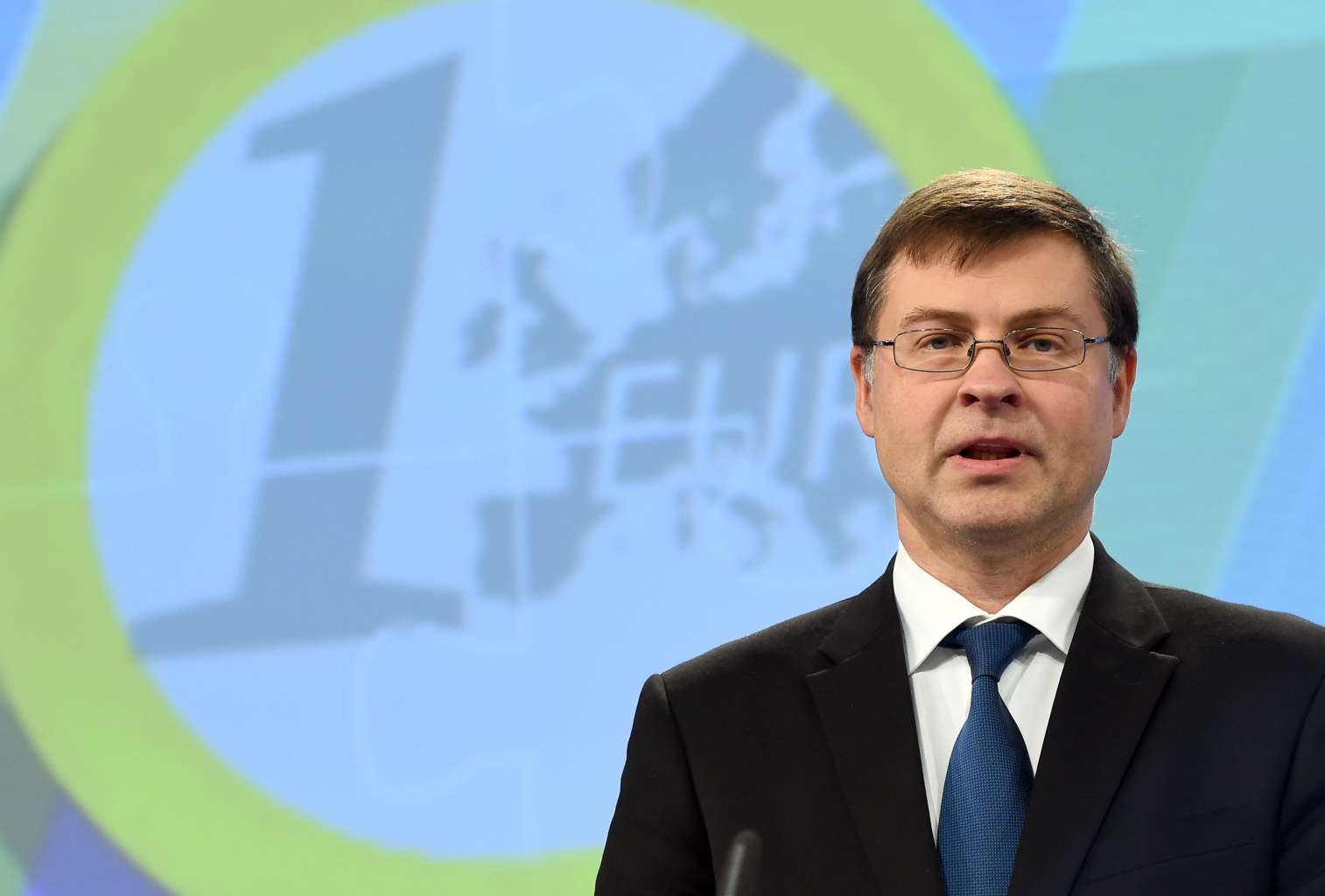 European Commission Vice President Valdis Dombrovskis at a press conference in Brussels on Oct 21, 2015.