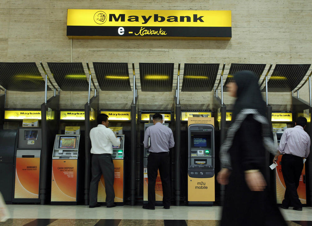 Customers using the automated teller machines at the Malayan Banking Bhd (Maybank) headquarters in Kuala Lumpur, Malaysia.