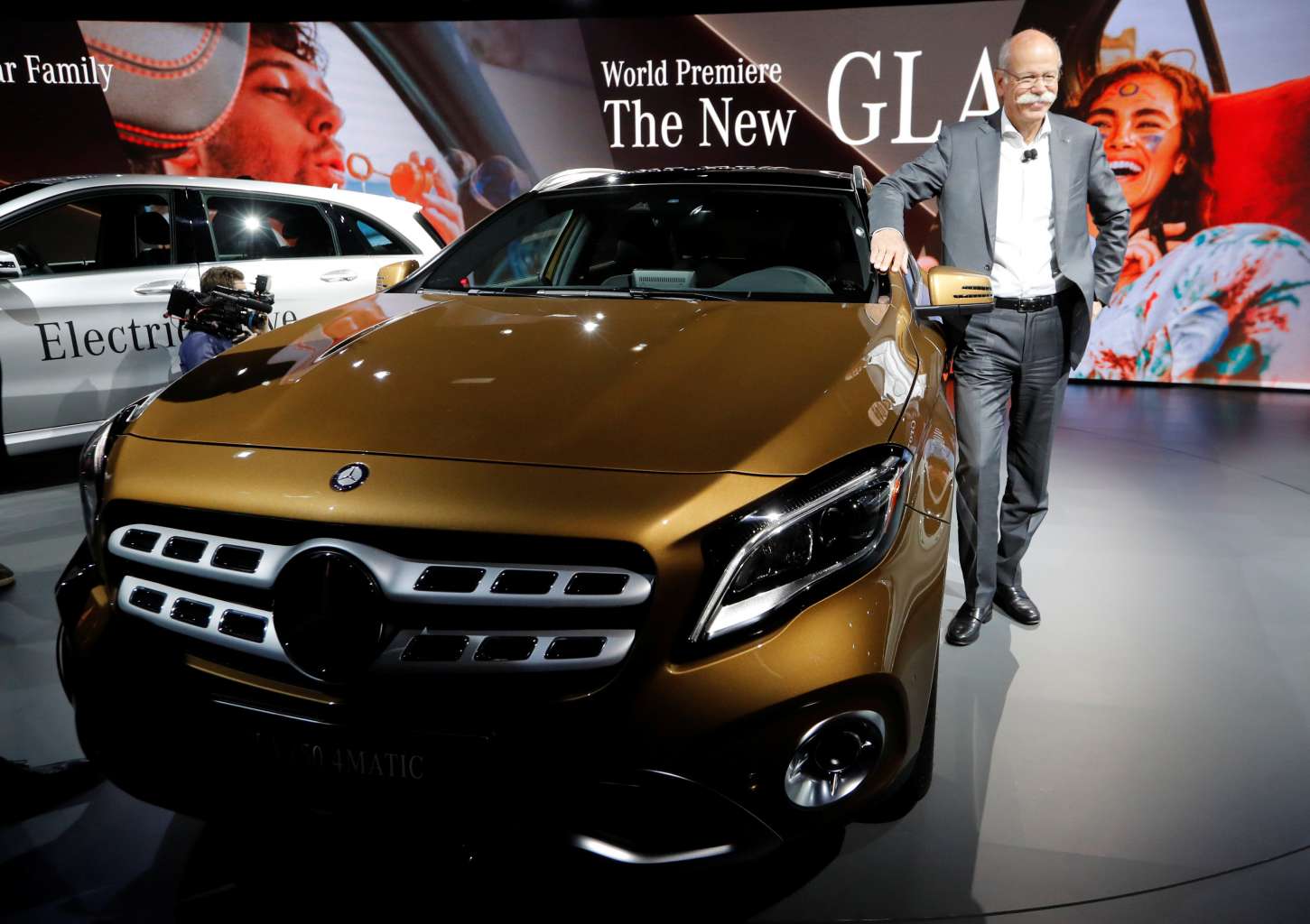 Dieter Zetsche poses in front of a Mercedes-Benz GLA 250 during the North American International Auto Show, Jan 8, 2017.