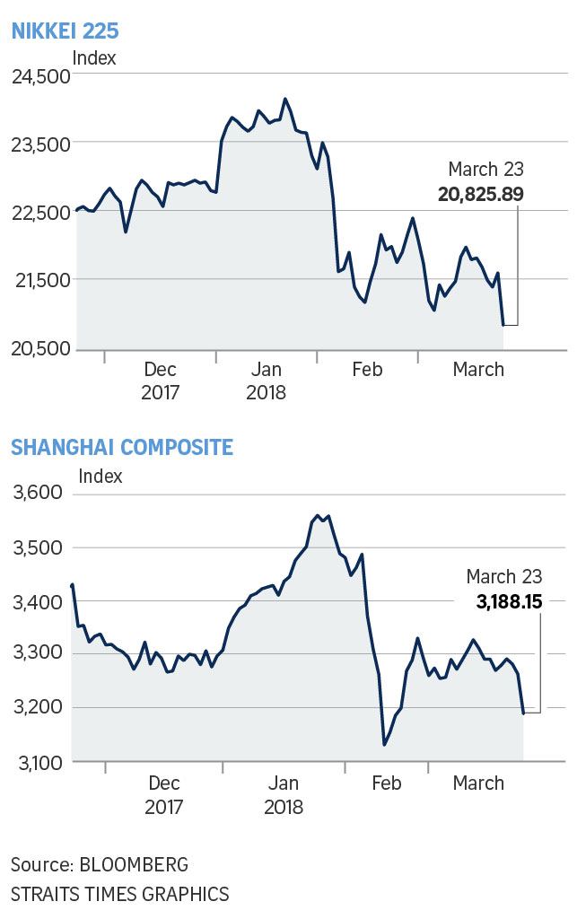 NEW YORK (AFP) - Wall Street stocks plunged more than 700 points on Thursday (March 22) after President Donald Trump hit China with tariffs on up to US$60 billion (S$79 billion) of goods, reviving fears of a trade war.