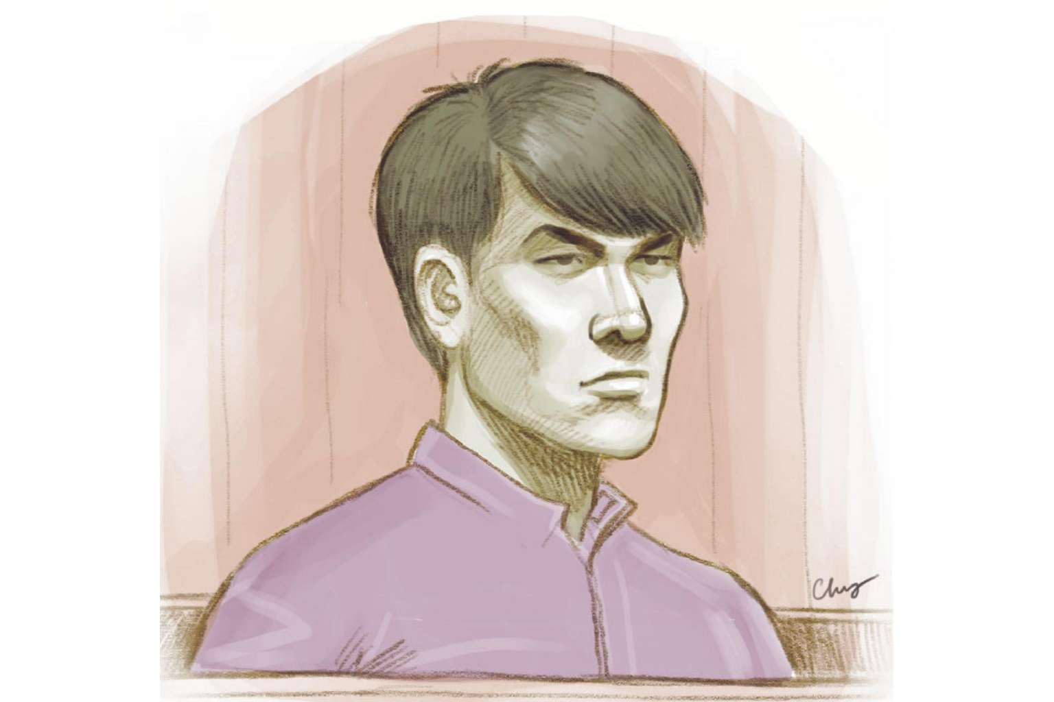 A court sketch showing former BSI banker Yeo Jiawei on Nov 2, 2016.