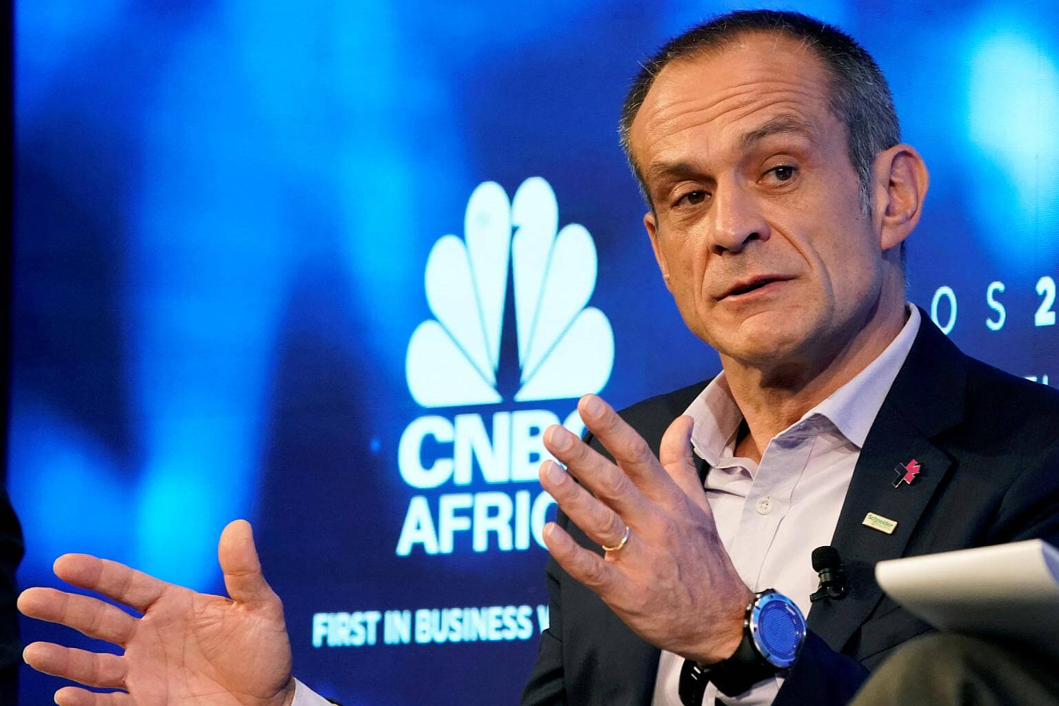 Jean-Pascal Tricoire, chairman and chief executive of Schneider Electric, at the World Economic Forum annual meeting in Davos, Switzerland on Jan 23, 2018.