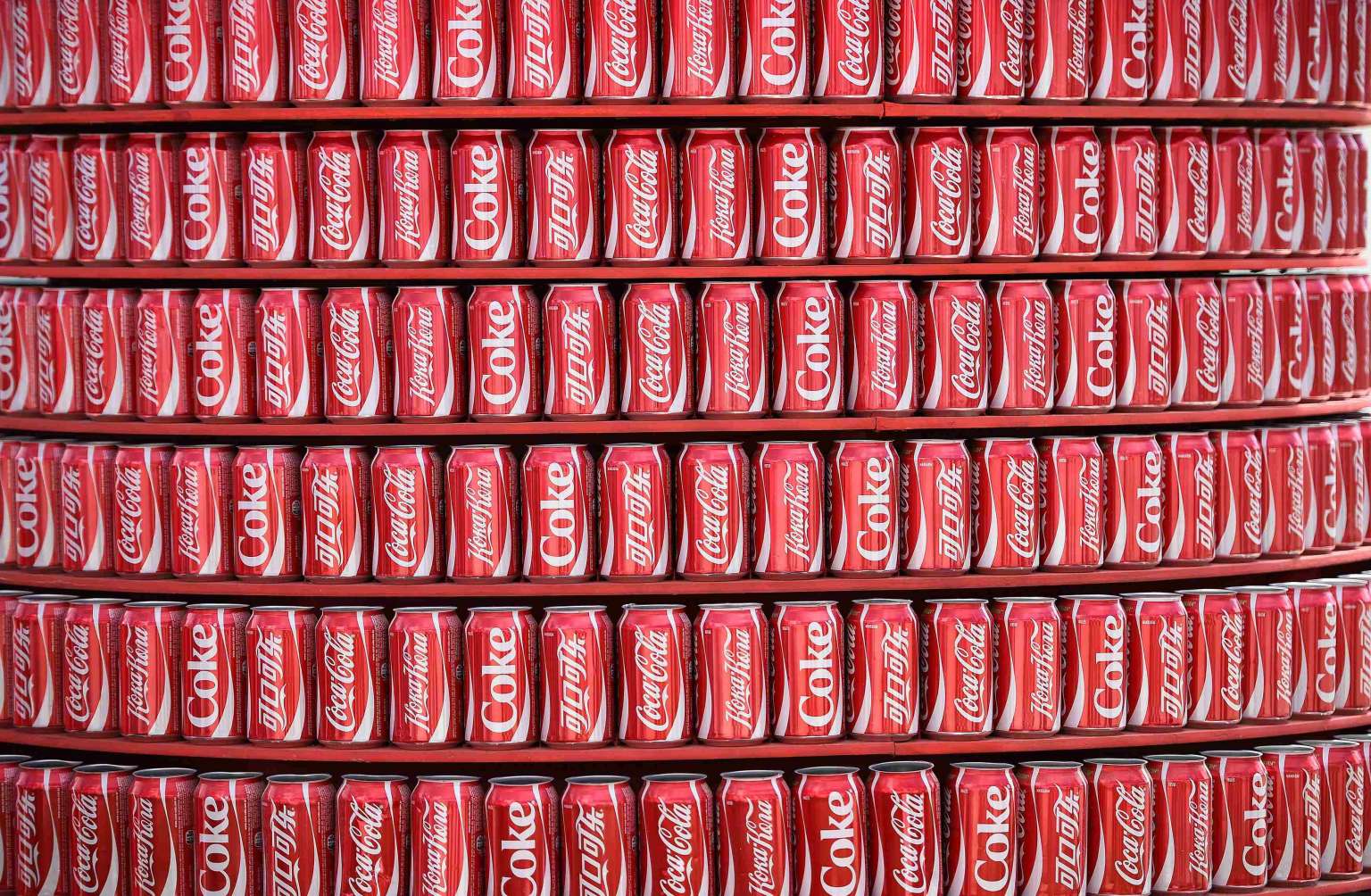A stack of Coca Cola drink cans in a 2014 file photo.