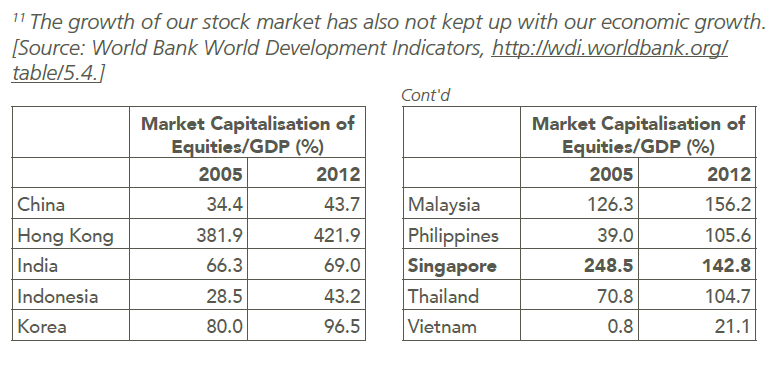 It also asked the Government to explore the possibility of creating a new market that can exist between the mainboard and the Catalist junior board for the growing number of "middle class" companies with stable earnings.