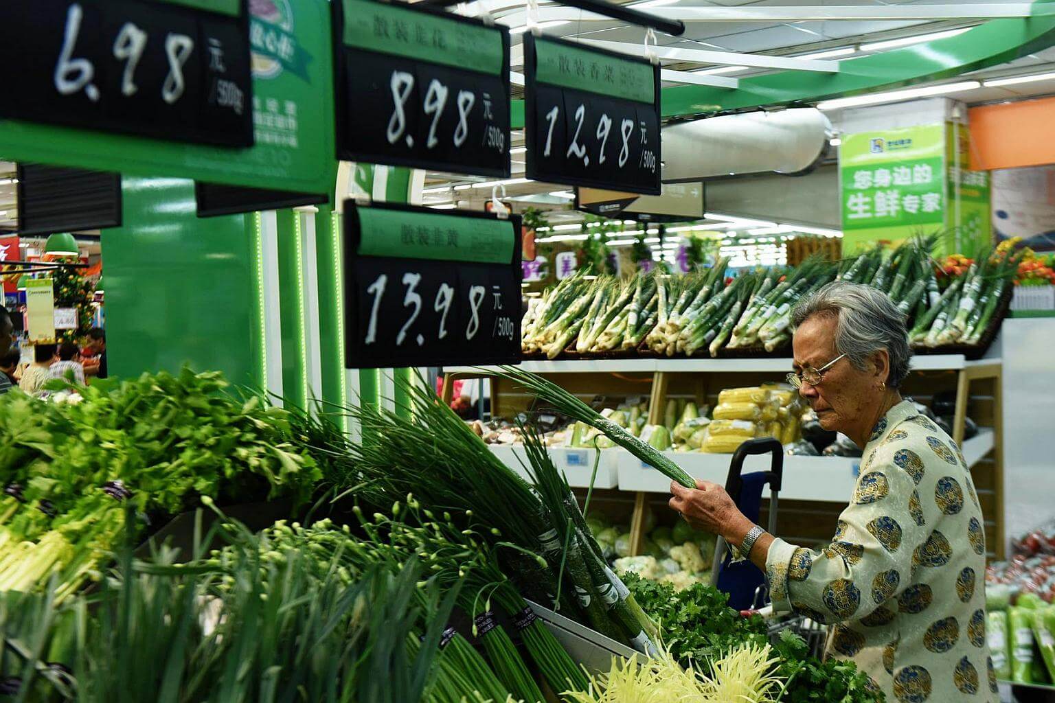A customer selects vegetables at a supermarket in Hangzhou, Zhejiang province, China on Sept 9, 2016. Investment in China's economy is stabilising and consumption is improving, a spokesman for China's statistics bureau said on Tuesday (Sept 13).
