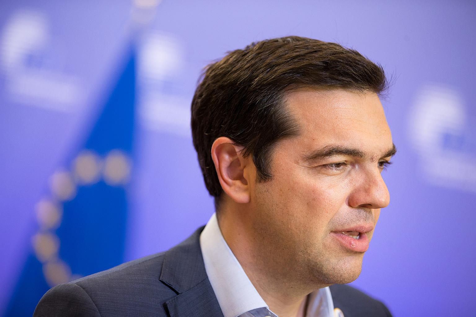 Greek PM Alexis Tsipras speaking to journalists following bailout talks in Brussels.