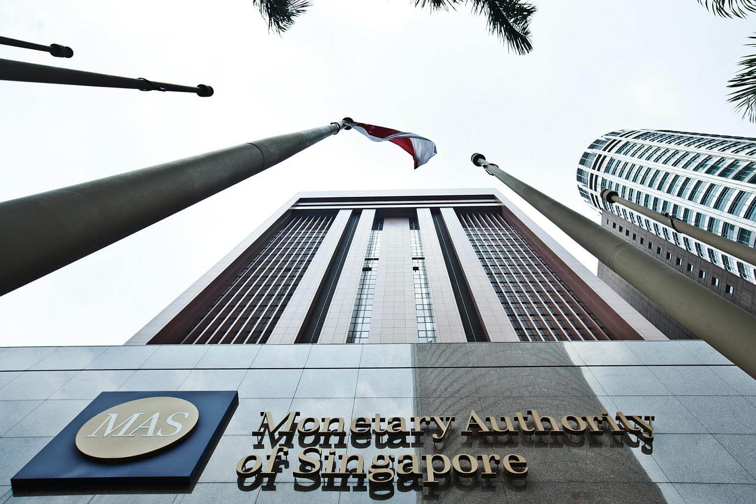 Signage for the Monetary Authority of Singapore (MAS) is displayed outside the central bank's headquarters in Singapore.