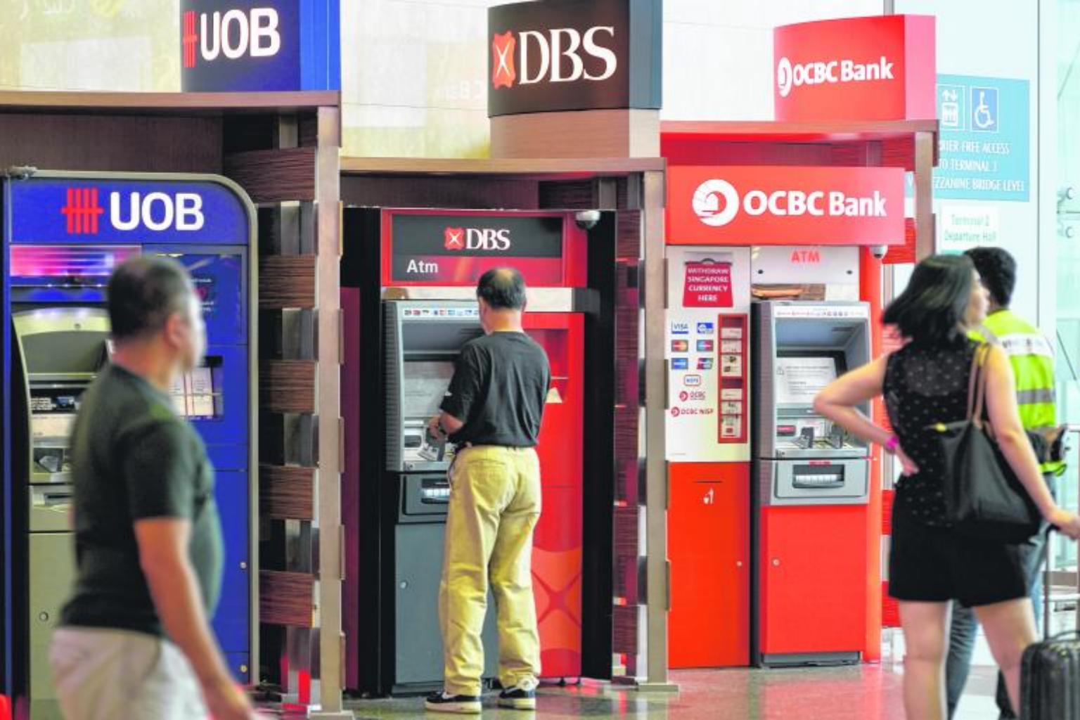 ATM machines from UOB, DBS and OCBC Bank, at Changi Airport terminal 2.