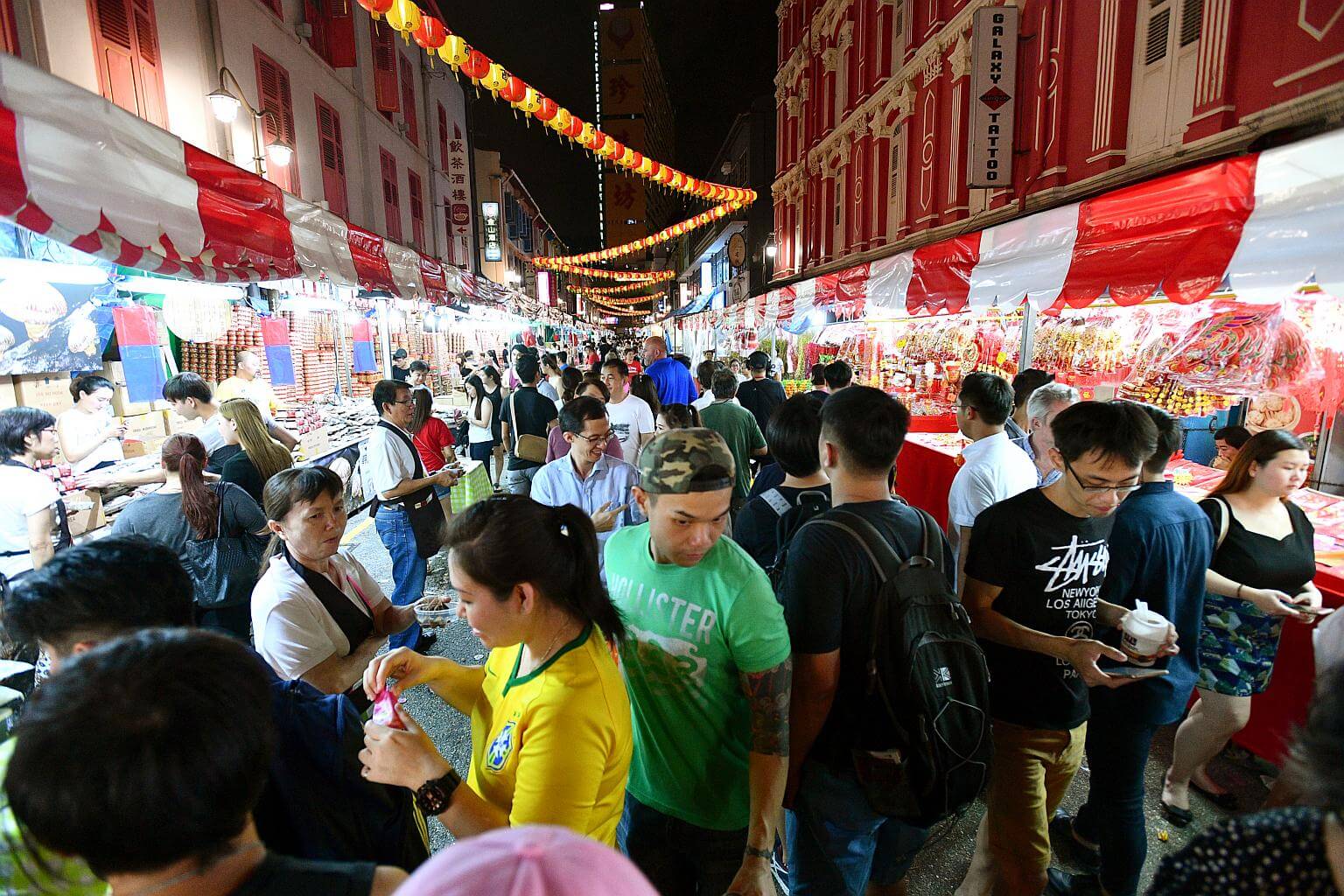 Shoppers at the Festive Street Bazaar and Carnival in Chinatown, on Jan 7, 2017.