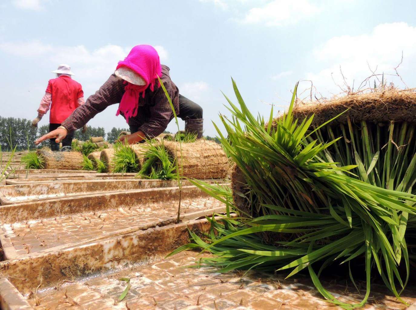 Farmers working in a seedling raising field in Lianyungang, China.