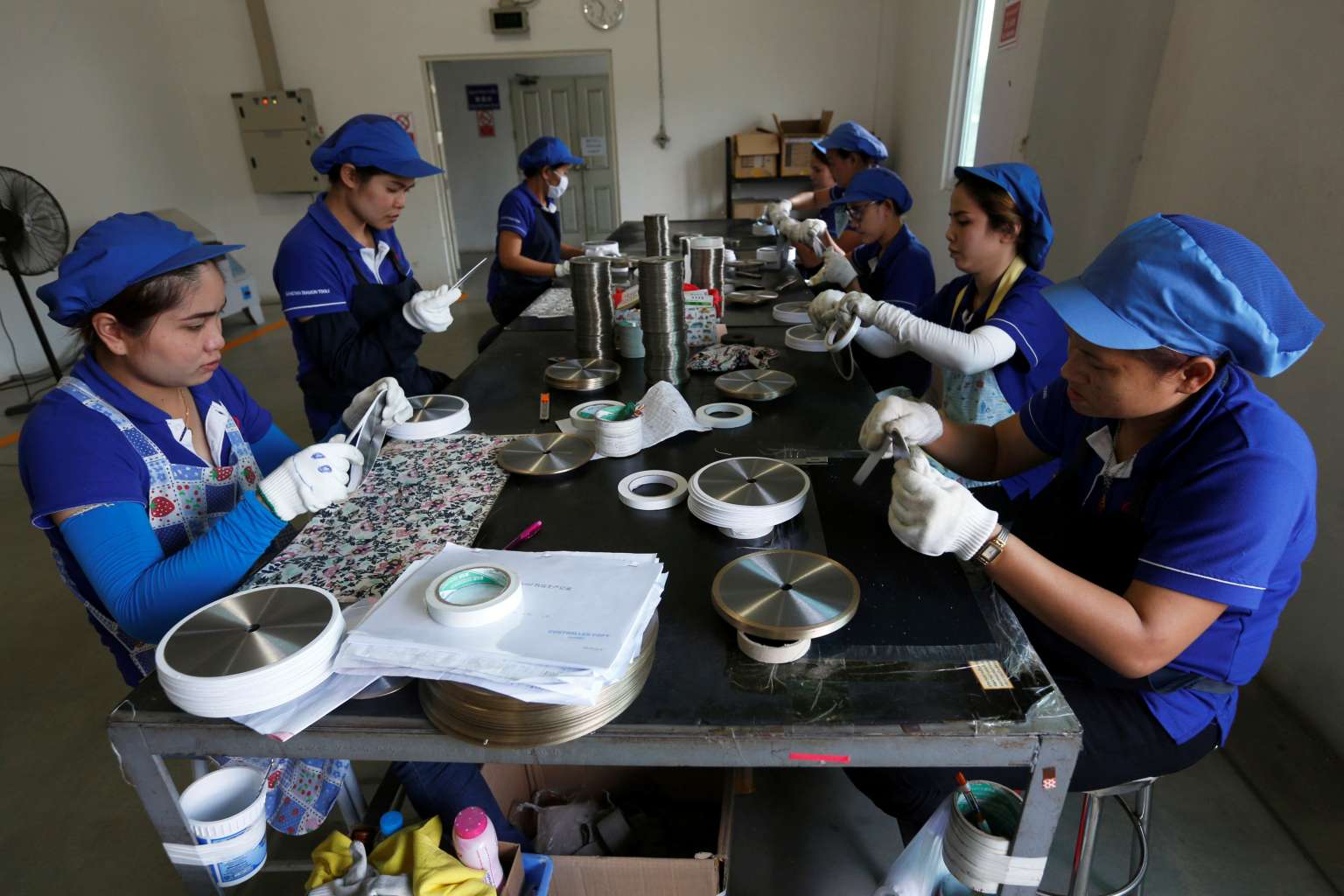 Employees arrange blades at an assembly line at Gang Yan Diamond Tools in the Thai-Chinese Rayong Industrial Zone, Thailand, on April 7, 2016.