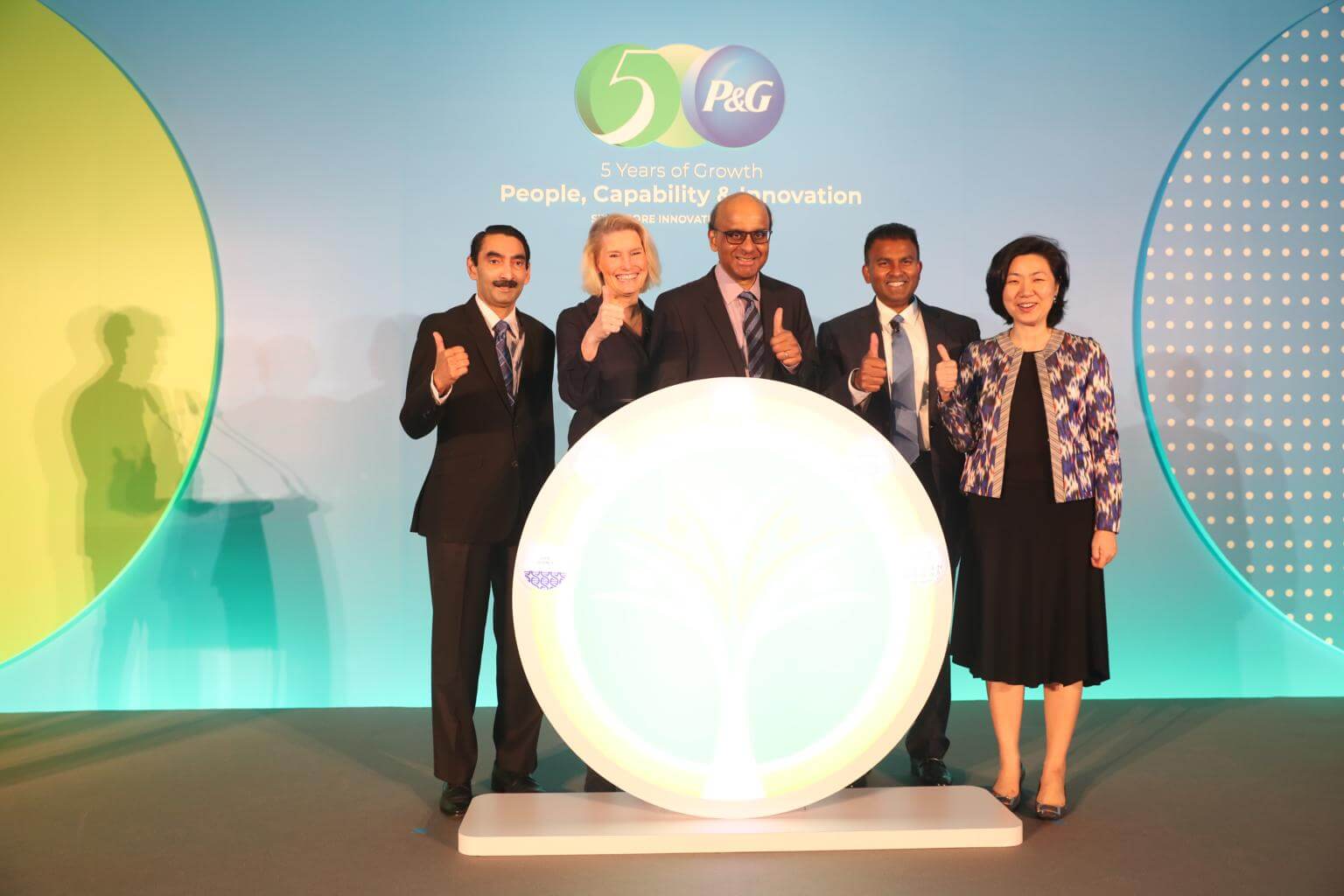 Deputy Prime Minister Tharman Shanmugaratnam (centre) at Procter & Gamble's Singapore Innovation Center's fifth anniversary celebration.