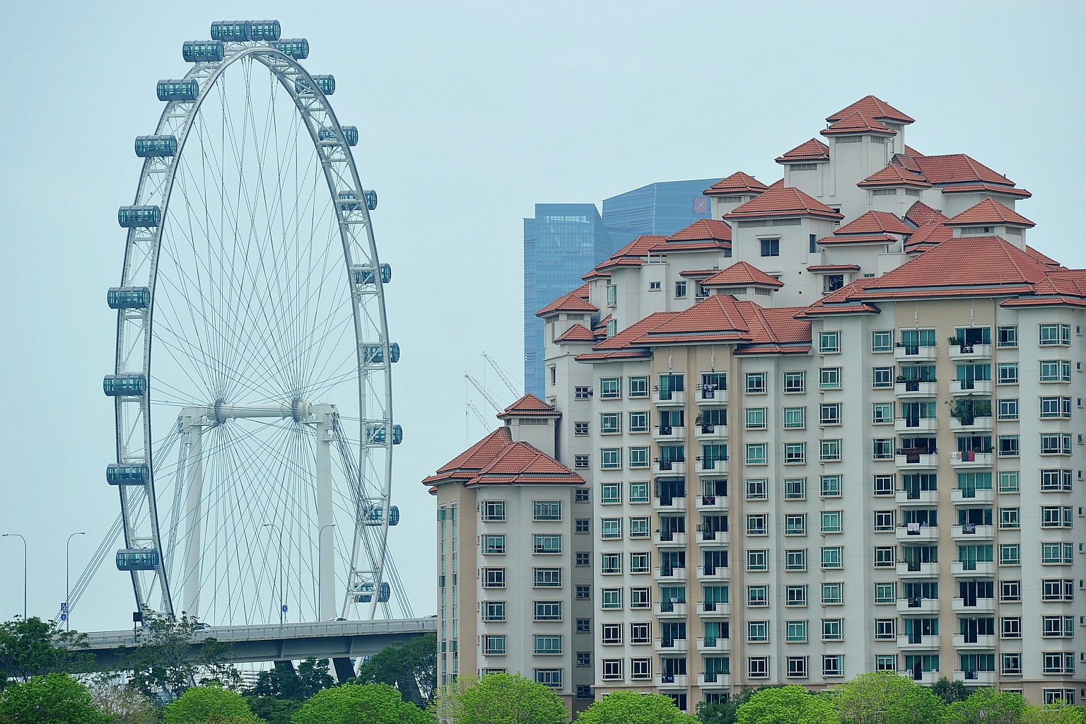 Costa Rhu Condominium in Tanjong Rhu, with the Singapore Flyer in the background.