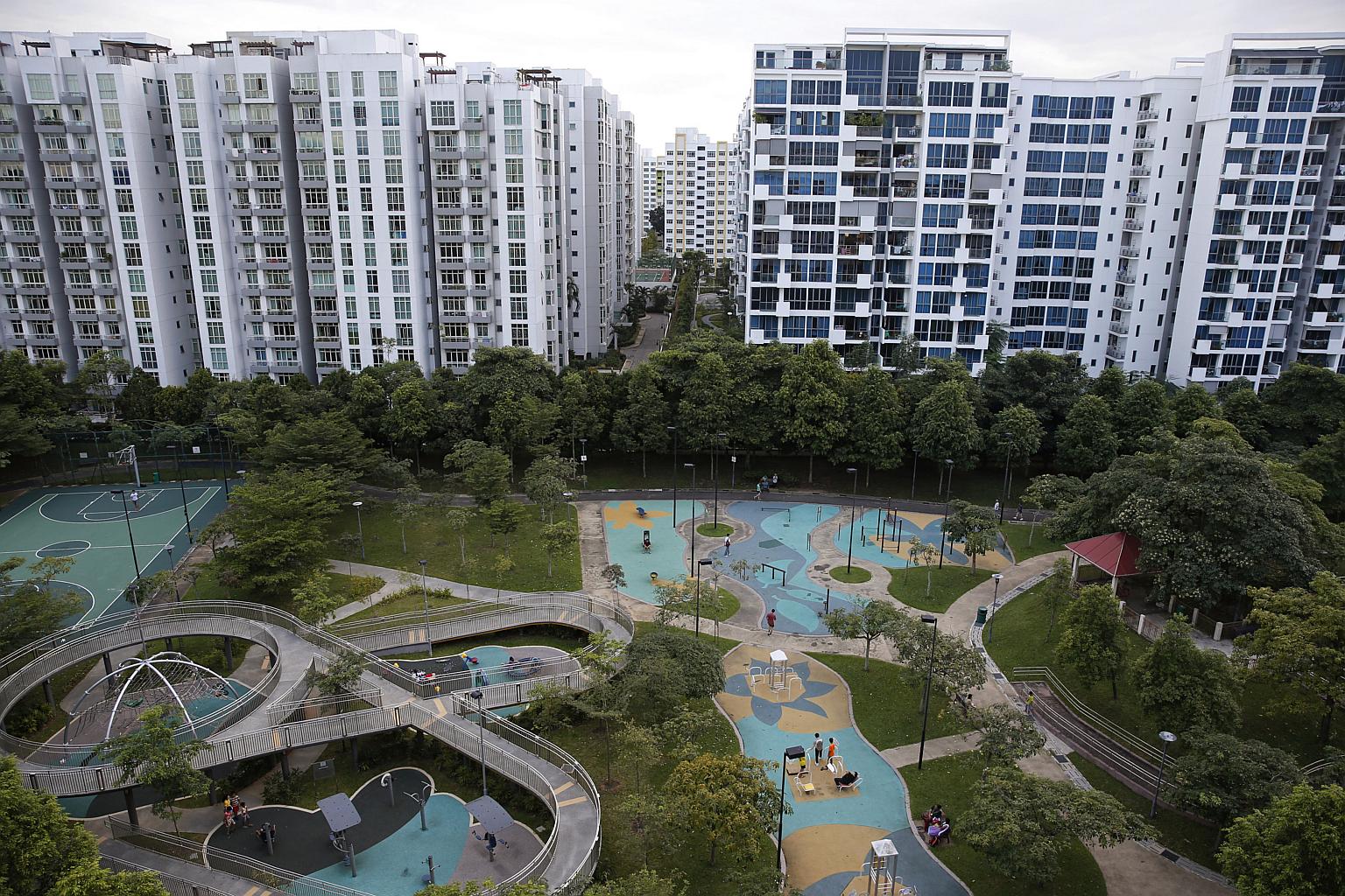 A view of blocks of private residential condominiums (left) and executive condominiums in Singapore.