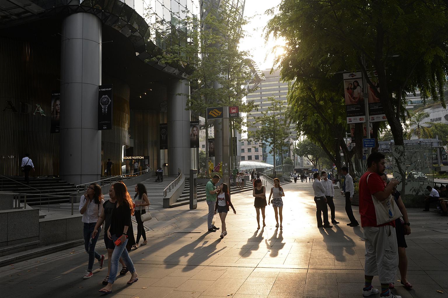 People walking along the retail stretch at Orchard Road.
