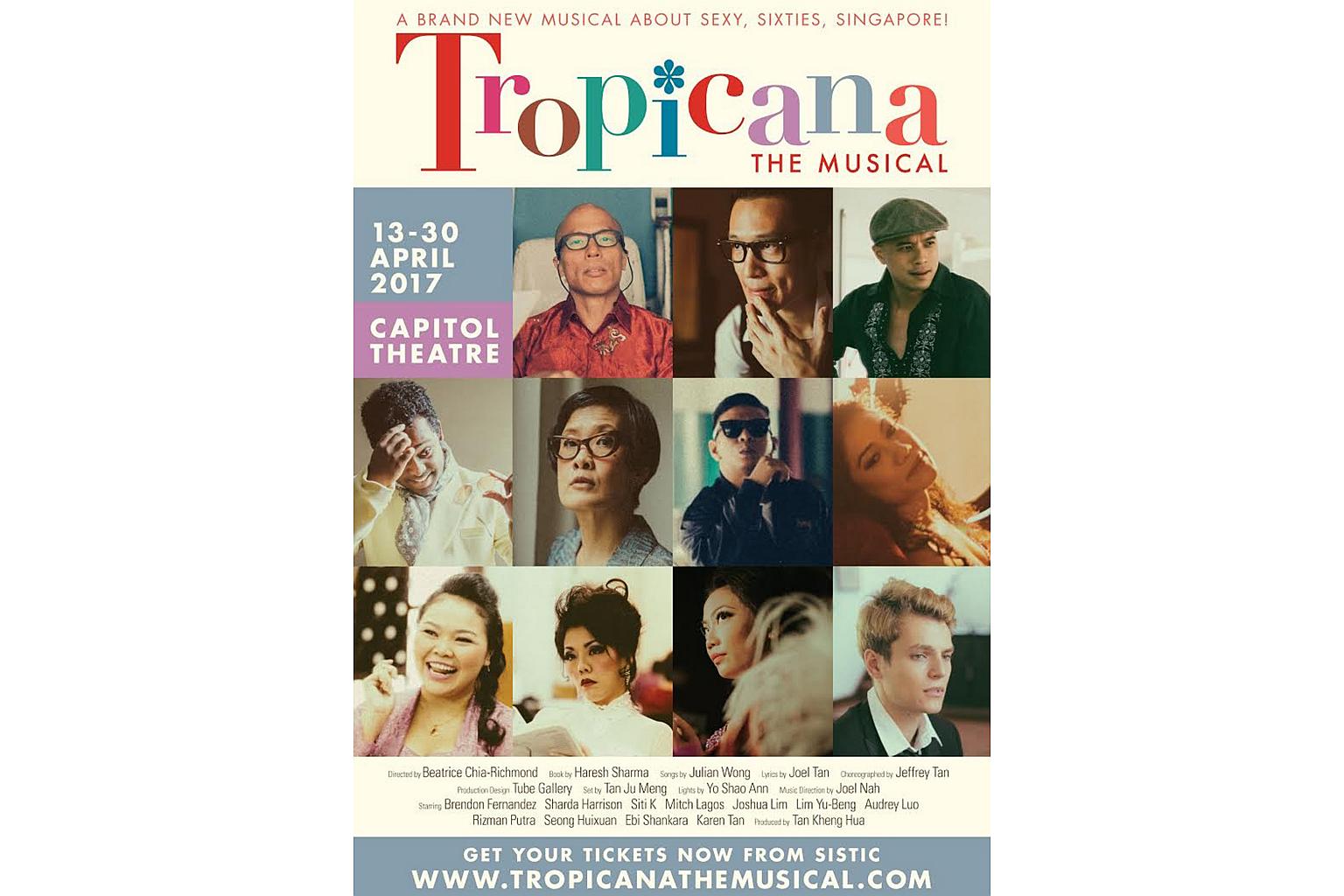 Tropicana The Musical is produced by veteran stage practitioner Tan Kheng Hua and will be staged from April 13 to 30 at the Capitol Theatre. The production cost is expected to be more than $750,000.