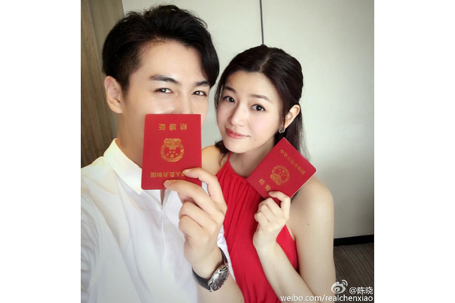 He posted photos of them and their marriage certificates on Weibo, with a message: "Starting today, you are my wife. Looking forward to the arrival of a new life!"