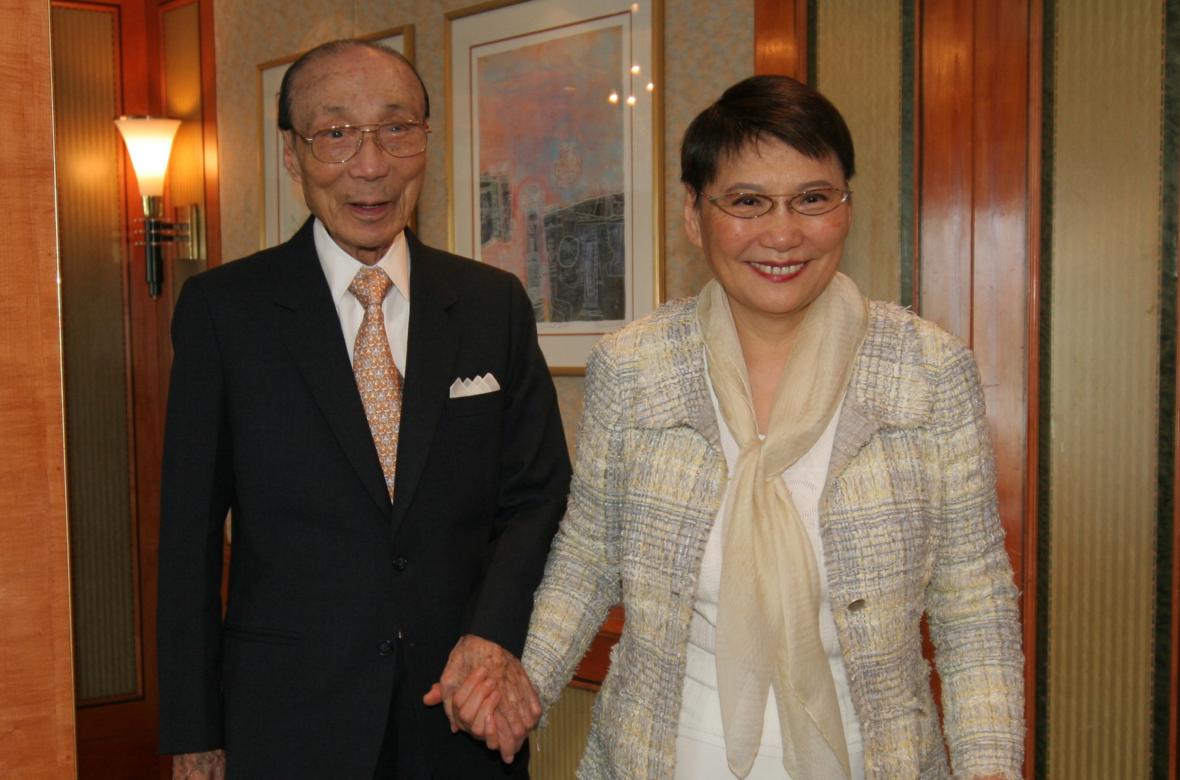Movie mogul Sir Run Run Shaw with second wife Mona Fong.