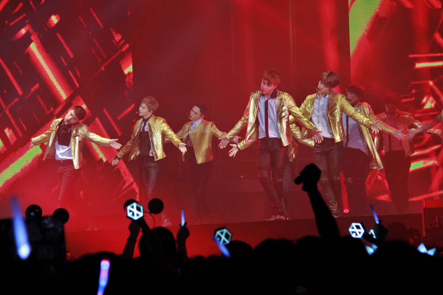 EXO performed old hits like Overdose and Growl and treated fans to the new chart-topping ballad Sing For You. Leader Suho, 24, also revealed that they will be releasing an album this year.