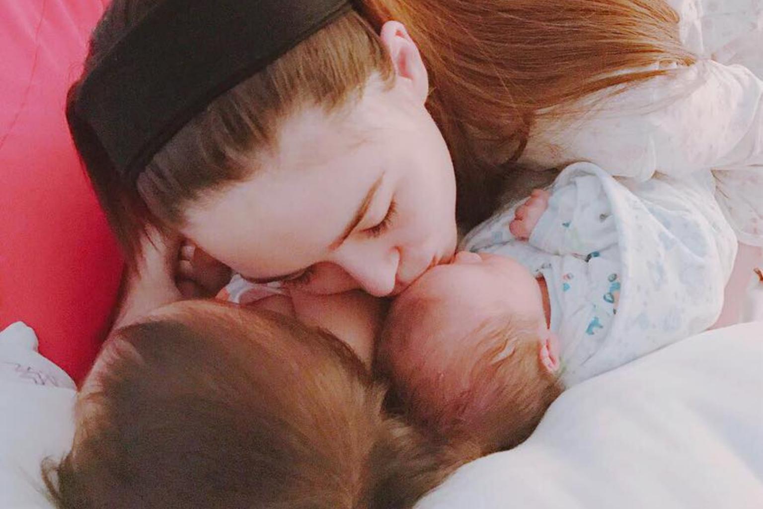 In the post, he shared a photo of his 23-year-old wife, Hannah Quinlivan, kissing their sleeping newborn as well as their older child, daughter Hathaway, in bed.