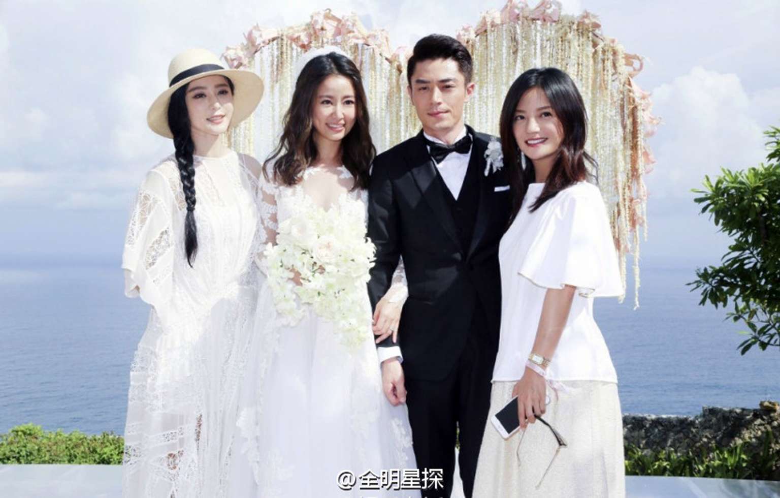 Newlyweds Ruby Lin and Wallace Huo with Fan Bingbing (left) and Vicki Zhao.