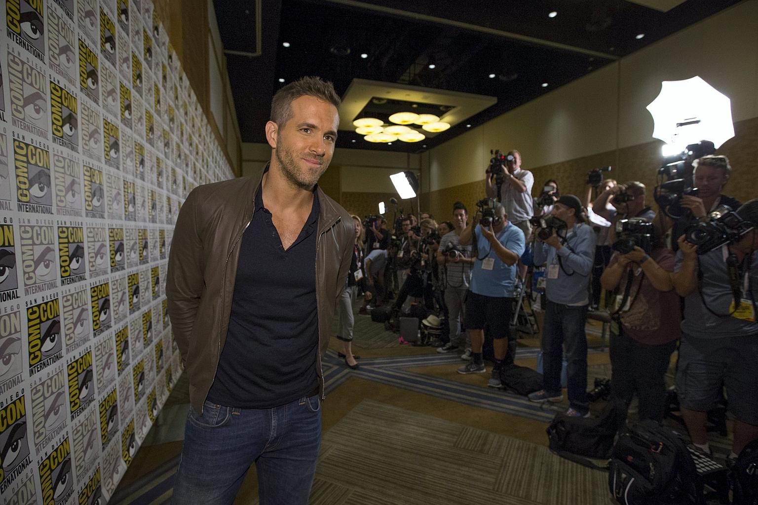 Ryan Reynolds poses at a press line for Deadpool during the 2015 Comic-Con International Convention in San Diego, California, on July 11, 2015.