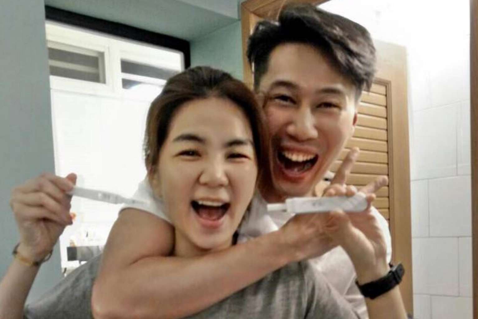 The 35-year-old shared her news in dribs and drabs, starting with photos she posted on Facebook and Weibo on Saturday (Oct 22) that showed herself and her husband, Malaysian businessman Alvin Lai, brandishing positive pregnancy test sticks.