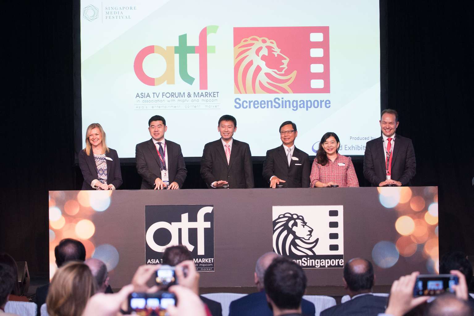 Mr Robert Gilby (right most), chairman of Singapore Media Festival Advisory Board officiating the opening of ATF and ScreenSingapore 2016.