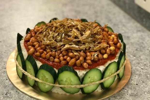 Nasi Lemak Cake with ikan bilis and kacang sells for RM58 (S$18.40)