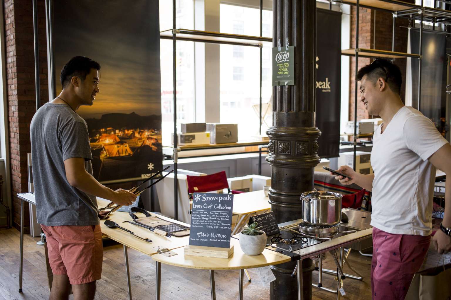 Customers browse camp-site cooking gear at a REI store in Manhattan. PHOTO: NYTIMES