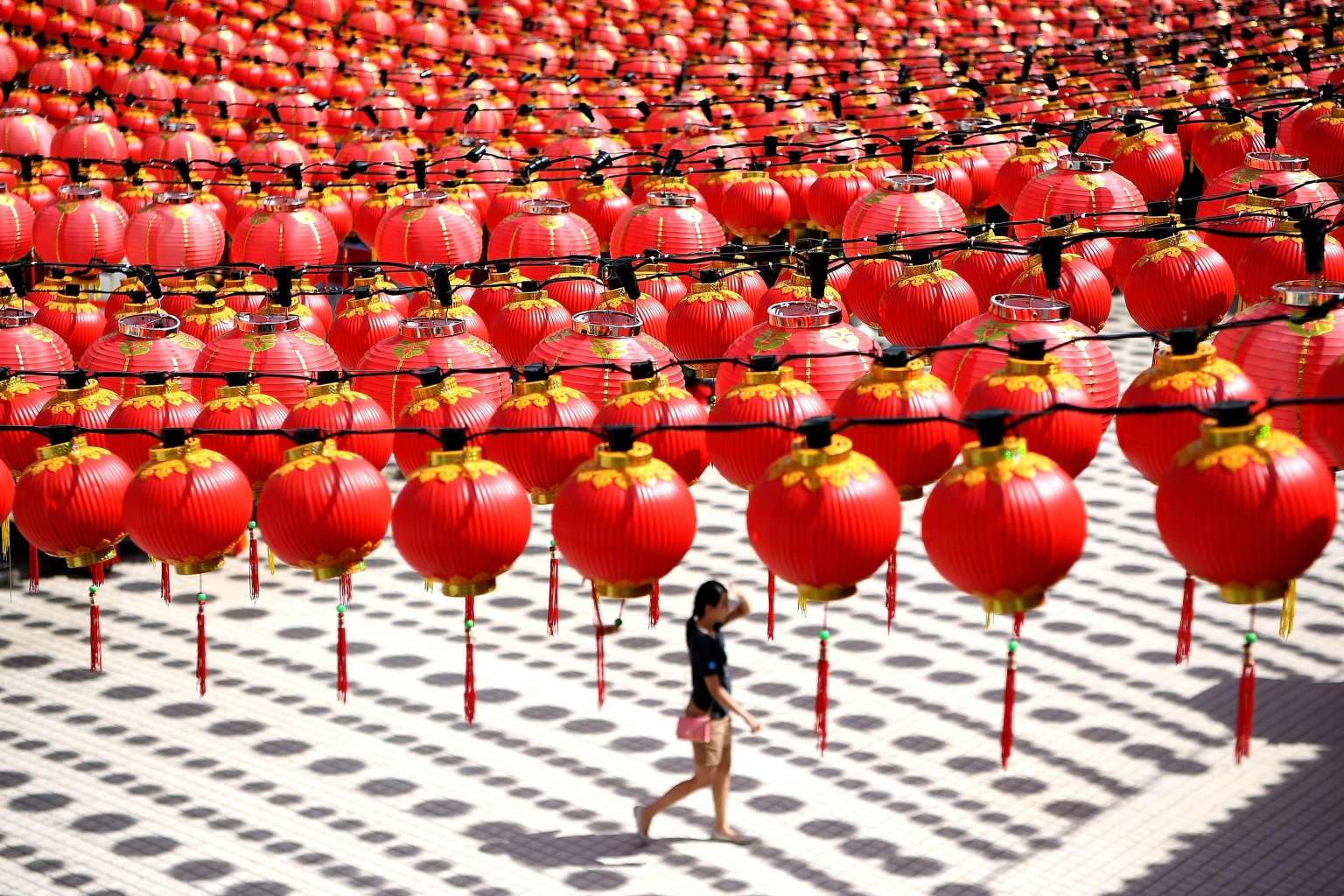 A woman walks under traditional Chinese lanterns decorated at the Thean Hou temple ahead of Chinese New Year celebrations in Kuala Lumpur on Jan 17.