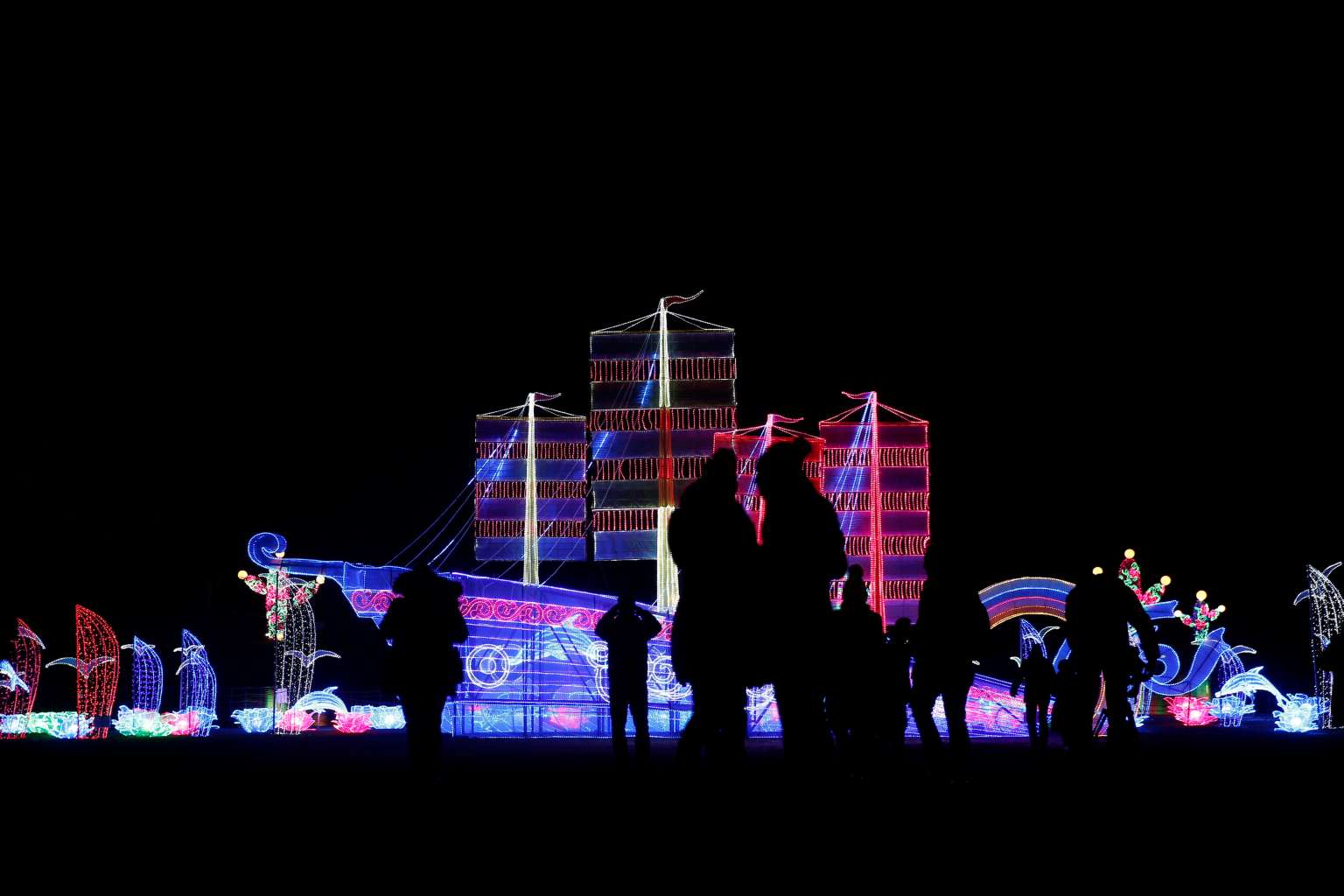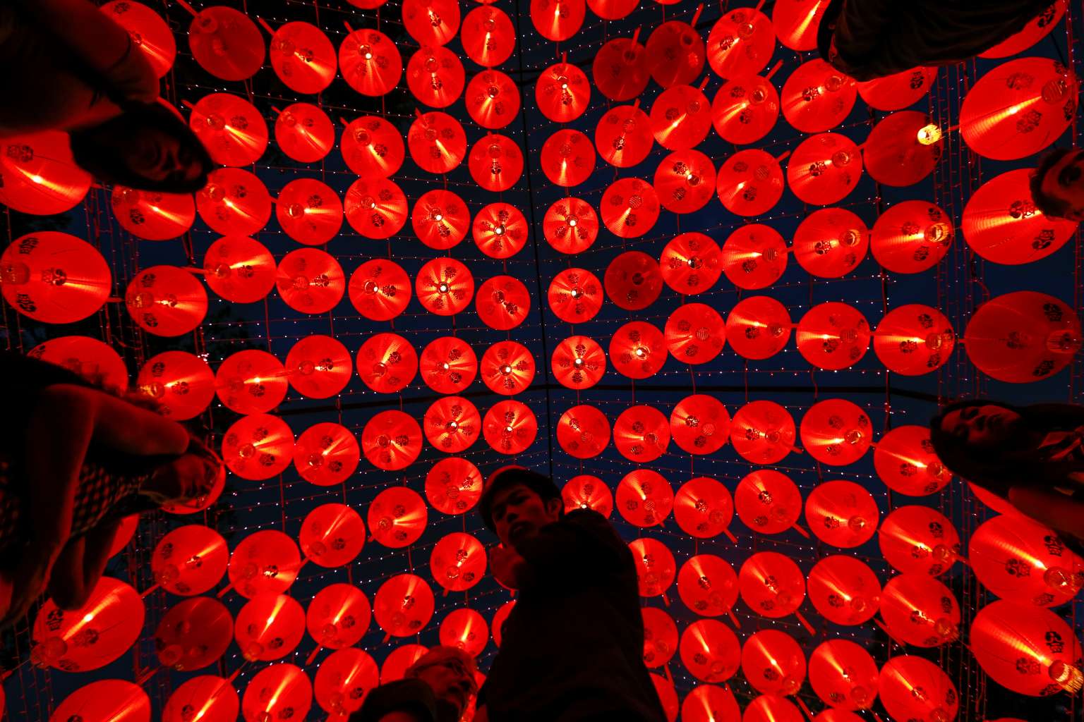 People are silhouetted against a light display during the The Magical Lantern Festival marking the Chinese new year at Chiswick House in London on Jan 18.
