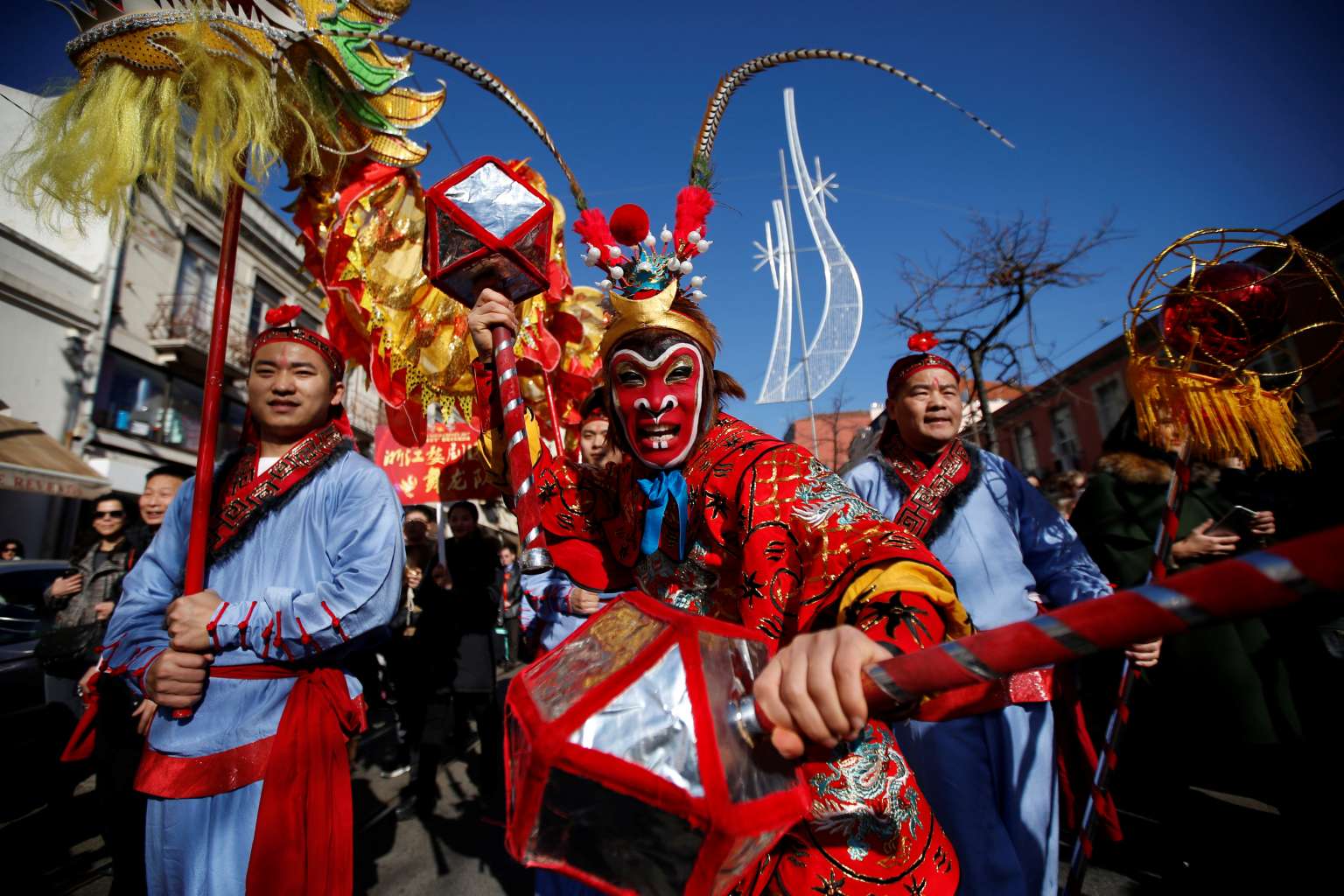 Dancers perform during a parade to celebrate Chinese New Year in Lisbon, Portugal on Jan 21.